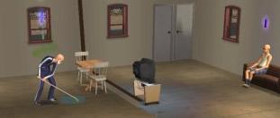 After the elderly man that used to own this died (the real estate agent didn't specify exactly why the kitchen smelt so bad either.) Allan and his father Neil moved in. Allan was a bag boy for the local Sim-Shoppers Food Mart and Neil was forced to move in with his son after he spent all his retirement money during in a pathetic attempt to convince a younger girl he was wealthy in the hopes that she would have sex with him. The plan failed miserably and now that he lives with Allan, he'll probably never have sex again. |
