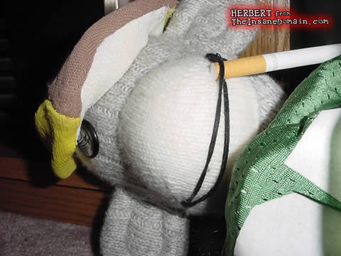 smoke. It's not lit and I was a good sock monkey.