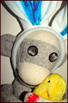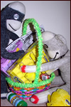 This year Easter was really fun! I got to share a basket of Peep treats with my friend and there was even a stuffed Peep that I could hug! I wore bunny ears and they made me feel all like a bunny and I was cute!